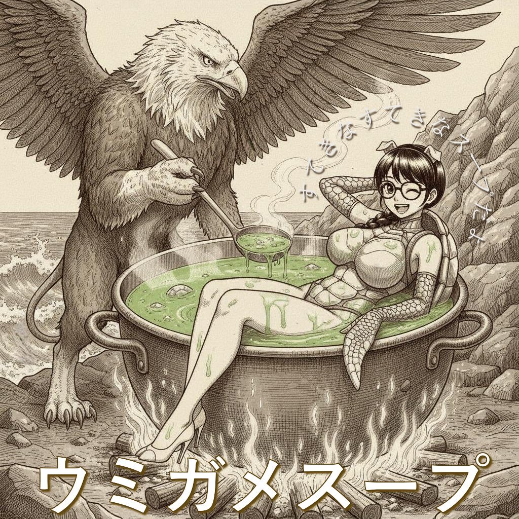 待機中に先週の #谷山浩子ノセカイ から「#ウミガメスープ」を家人(AI)に #AIイラスト にして貰った ディズニー映画に登場しないだけでマイナー扱いされるニセウミガメ 文庫版「#不思議の国のアリス」に和田誠氏が描いた挿絵では頭が豚だったので、豚耳を付けて擬人化 素敵なスープを召し上がれ♪ pic.x.com/2AclyFjvkF