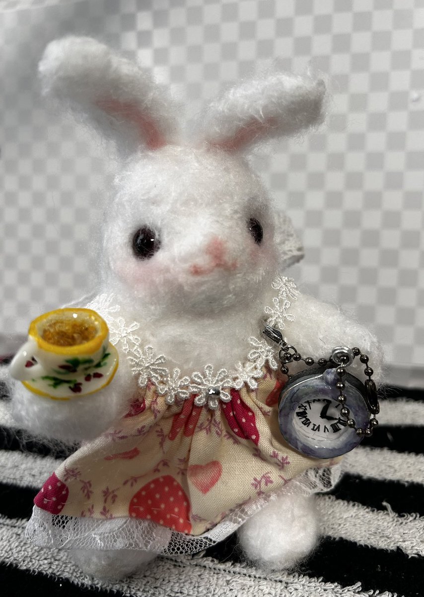 アリスの白うさぎ🐰の女の子版も作ってみたよ😃もふもふしっぽ #不思議の国のアリス #羊毛フェルト pic.x.com/aM9HdaAPov