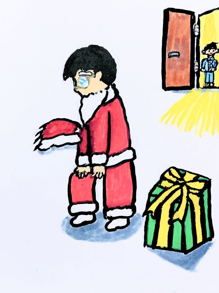 こちらの不採用ポストカード作品は、クリスマスイヴに子供のプレゼントを枕元に置くために、お父さんがサンタクロースの格好をしていと、起きてしまった子に見られてしまうという作品です 帽子意外の衣装を着た後ですが、見られているのに気づいていないようです #クリスマス #ポストカード #不採用 pic.x.com/VnnHFzyW8W