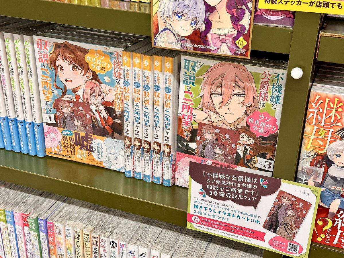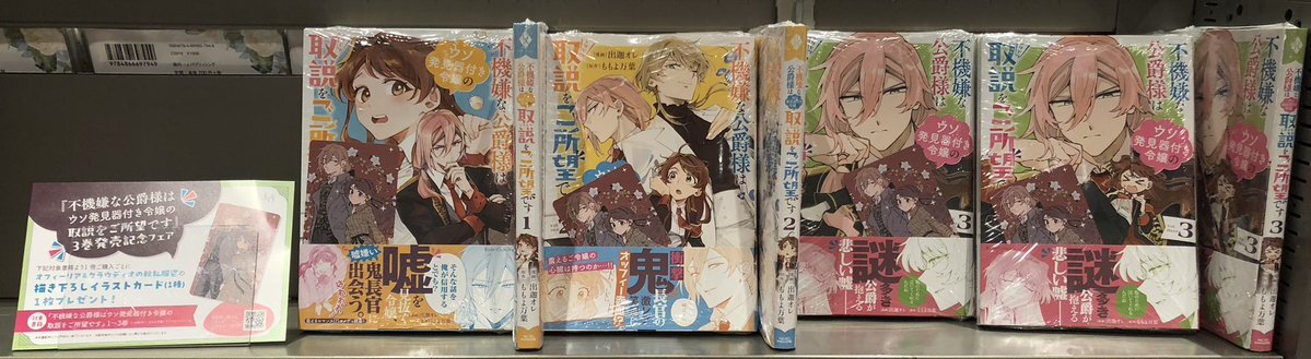 【BOOK販売情報】 #不機嫌な公爵様はウソ発見器付き令嬢の取説をご所望です 3巻発売記念フェア開催中です🎉 棚番 2108です。 ご来店お待ちしております(^^)🍂 #出迦オレ 先生(@deka_sobig) #ももよ万葉 先生 (@momoyomayo) #マイクロマガジン社 pic.x.com/A7YxW6r0Wx