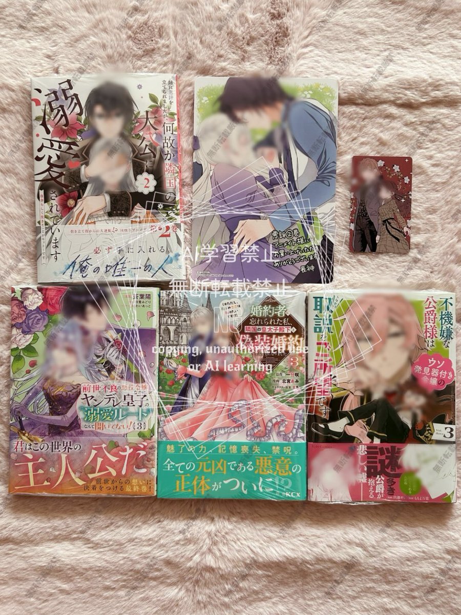#今日買った漫画 ① #姉に悪評を立てられましたが、何故か隣国の大公に溺愛されています #前世不良の悪役令嬢なのに、ヤンデレ皇子の溺愛ルートなんて聞いてない! #婚約者に忘れられた私、隣国の皇太子殿下と偽装婚約することになりました #不機嫌な公爵様はウソ発見器付き令嬢の取説をご所望です pic.x.com/Ns1jrFfQVX