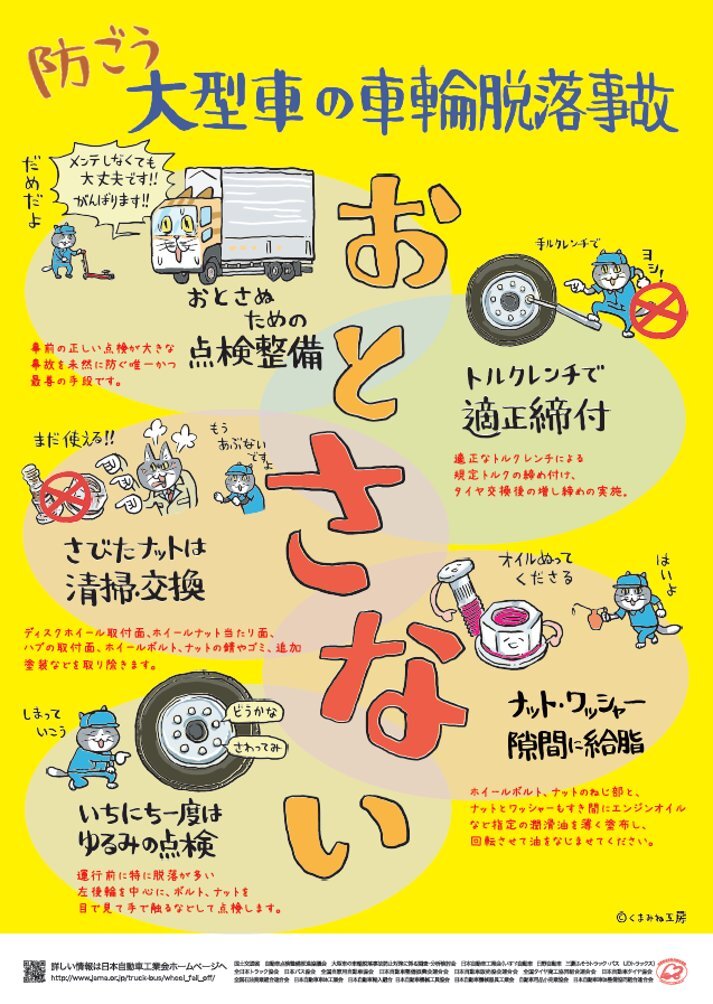 【車輪脱落事故ゼロを目指して】 #北海道運輸局 は冬用タイヤへの交換時期に車輪の脱落事故が急増するため、「大型車の車輪脱落事故防止キャンペーン」を実施しています。 適切なタイヤ脱着作業や保守管理の重要性について周知・啓発を強化し、関係機関と連携した街頭点検を実施します。