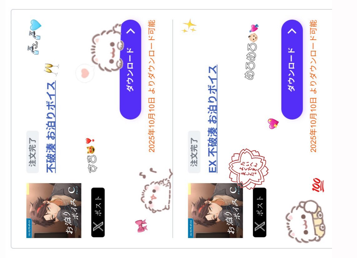 不破さんのお泊まりボイス、糖度高いと耳にしたため販売終了3分前に買ったんですが、最高すぎてこれ 甘すぎて狂う ほまに 買っていない方、いつか再販されたら是非買ってください。 後悔しません 買った方、私と手と手を取り合って一緒に埋まりましょう(?) #不破不破ボイス pic.x.com/aHNiGCflCq