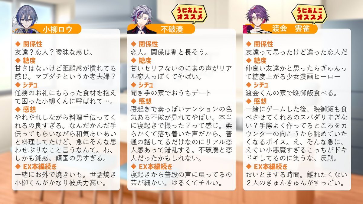 🥂 #にじさんじお泊りボイス ♡ #不破不破ボイス 本編もEXも良すぎた〜ჱ̒ˆT ˙̫ Tˆ ALTに感想書いてます✍🏻💬気になってる方のご参考になれば幸いです(ToT)💕 (シチュ等ネタバレ注意です💧) pic.x.com/GFuj2svEGq