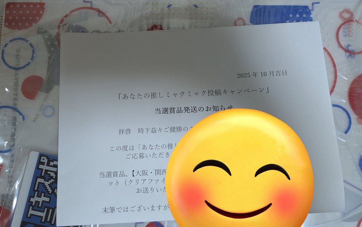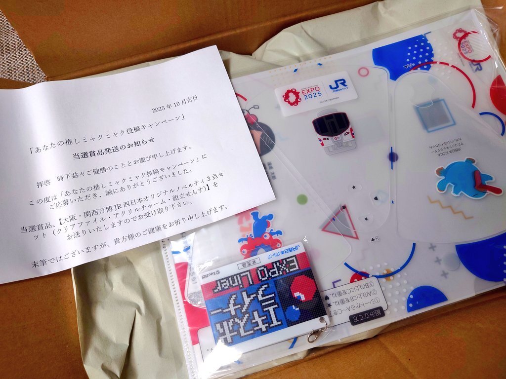 なんと!世界のミャクミャク展のポストを固定してたら当選しました😊 西日本旅客鉄道さま、ありがとうございました🙇 #世界のミャクミャク展 #JR西日本 pic.x.com/Y4sW0wwlxH x.com/expo2025_jrwes…