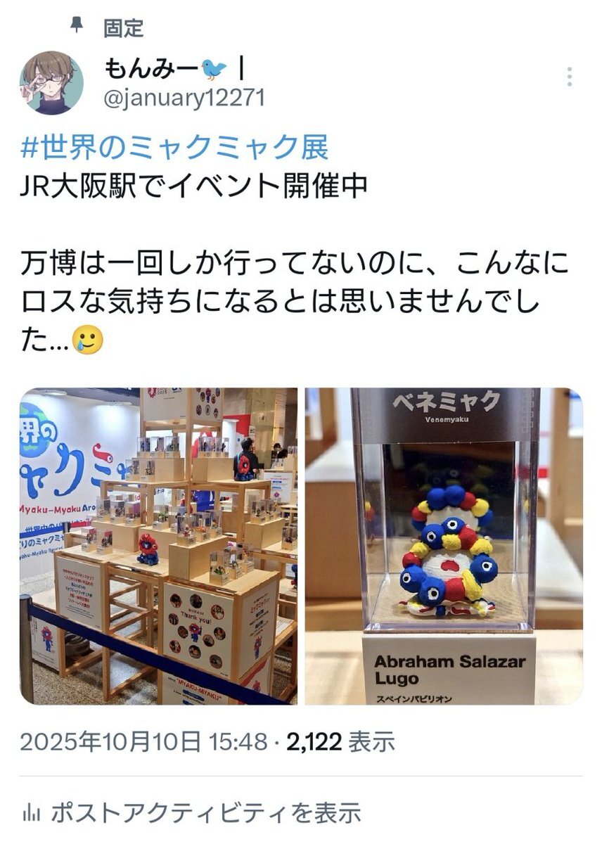 今見た え〜?知らなかった 中を見たら 終わってた😭 #世界のミャクミャク展 x.com/expo2025_jrwes…