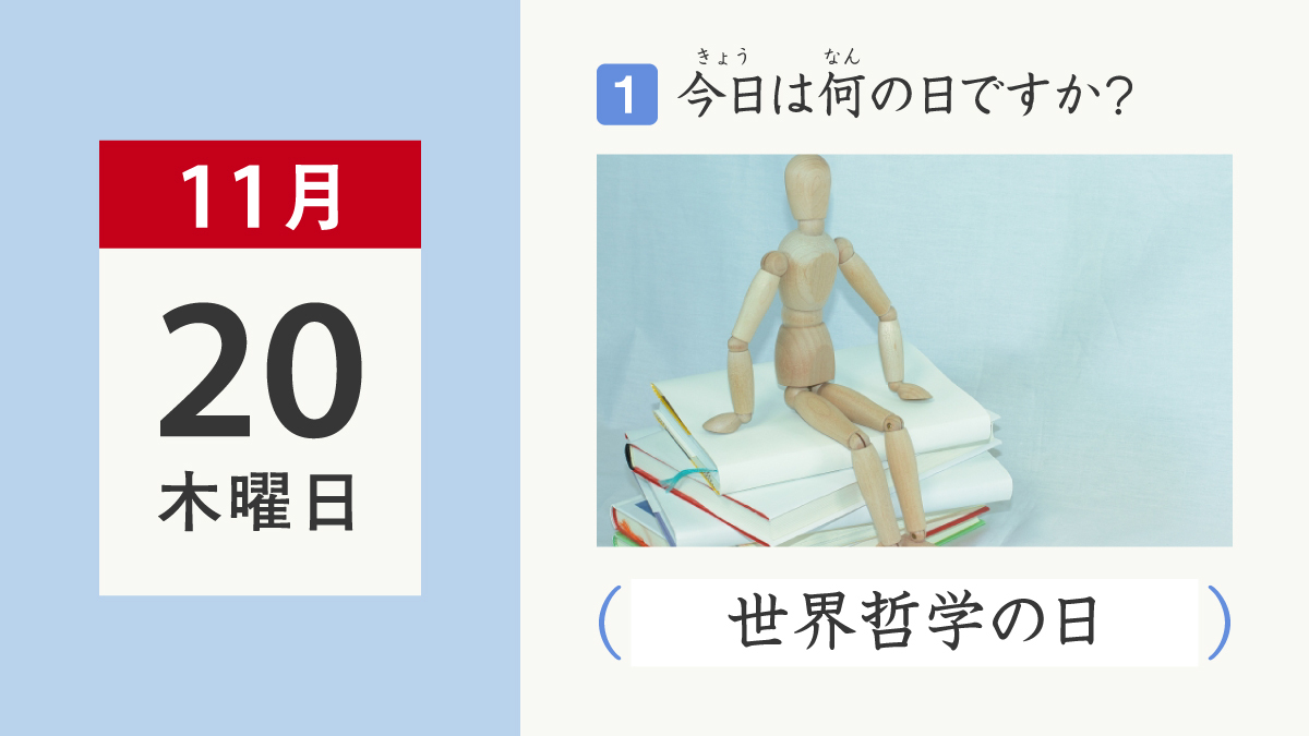 こんにちは☀️ 本日11/20は #世界哲学の日 UNESCOが毎年11月の第3木曜に実施する国際デー。 ボジョレーヌーヴォーの解禁日でもありますね! 11月も後半戦 今年も残りあと42日! この後も 明るく元気よく 素晴らしいお時間をお過ごしください! #今日は何の日 pic.x.com/gqLKaPPmzJ