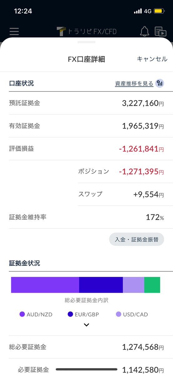 【トラリピ 週次報告】 投資開始から1877日目 投資額 200万 累計利益 1,227,005円 評価損益 -1,261,841円 今週利益 9,129円 みるみるうちに含み損が増大しています。かなり苦しい状態に、、、 #トラリピ #ダイヤモンド戦略 #世界戦略 pic.x.com/DxBtjKHCDB x.com/azh7teoloiquol…