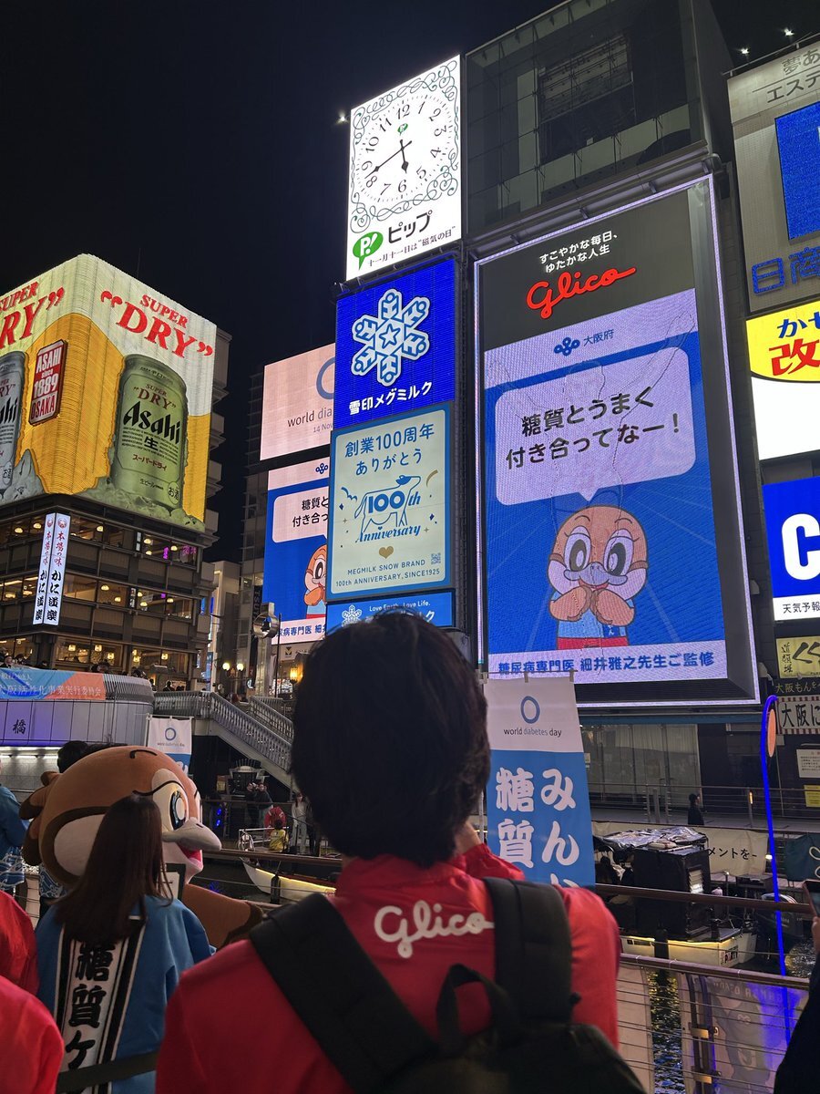 先日道頓堀で世界糖尿病デーのイベントに携わりました! この日だけグリコ看板のデザインが変わっていて、レアでした✨ #イベント21 #世界糖尿病デー #現場紹介 pic.x.com/VhM20BTK5M