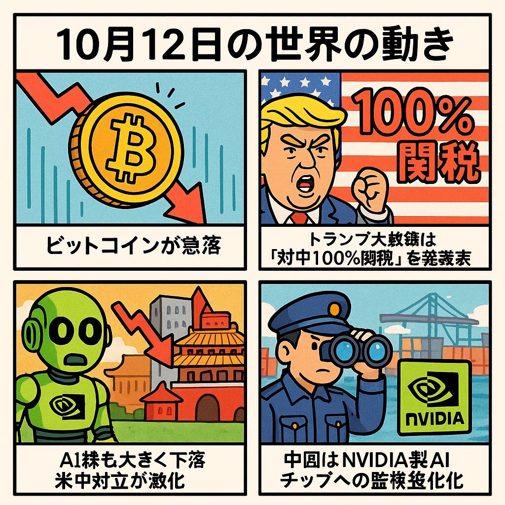 トランプ氏が中国に100%追加関税、重要ソフト輸出制限を11月1日から課すとの報道です。 これは私たちの生活や投資に影響を及ぼす可能性があります。 冷静に、今後の経済動向を注視していきましょうね。 #投資 #経済ニュース #世界経済 bloomberg.co.jp/news/articles/…