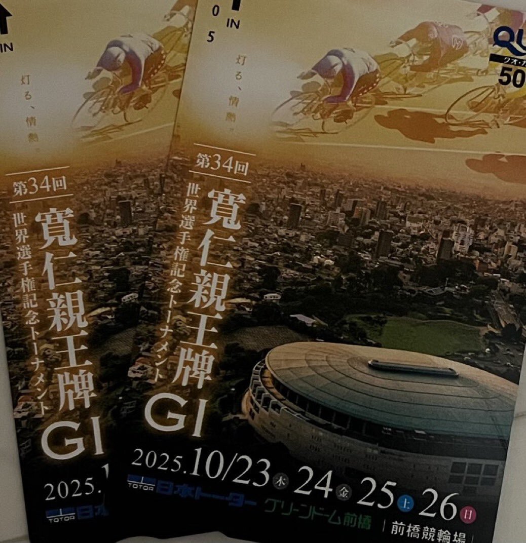 返信先:@keirin_web第34回 #寬仁親王牌 #世界選手権記念トーナメント GⅠ(10/23~10/26) #前橋競輪 場での開催おめでとうございます🚴🚴‍♀️🎊 素敵なクオカード😻 当選したら大切に致します! ご縁がありましたら幸いです😌 #月刊競輪WEB編集部