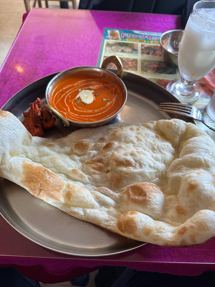 いつぞやのランチは、バスーデブでランチAセット バターチキンカレーにナン! 基本の一皿😊 #バスーデブ #両国 #カレー好きな人と繋がりたい #スパイス好きな人と繋がりたい pic.x.com/pxyRihm9Kw