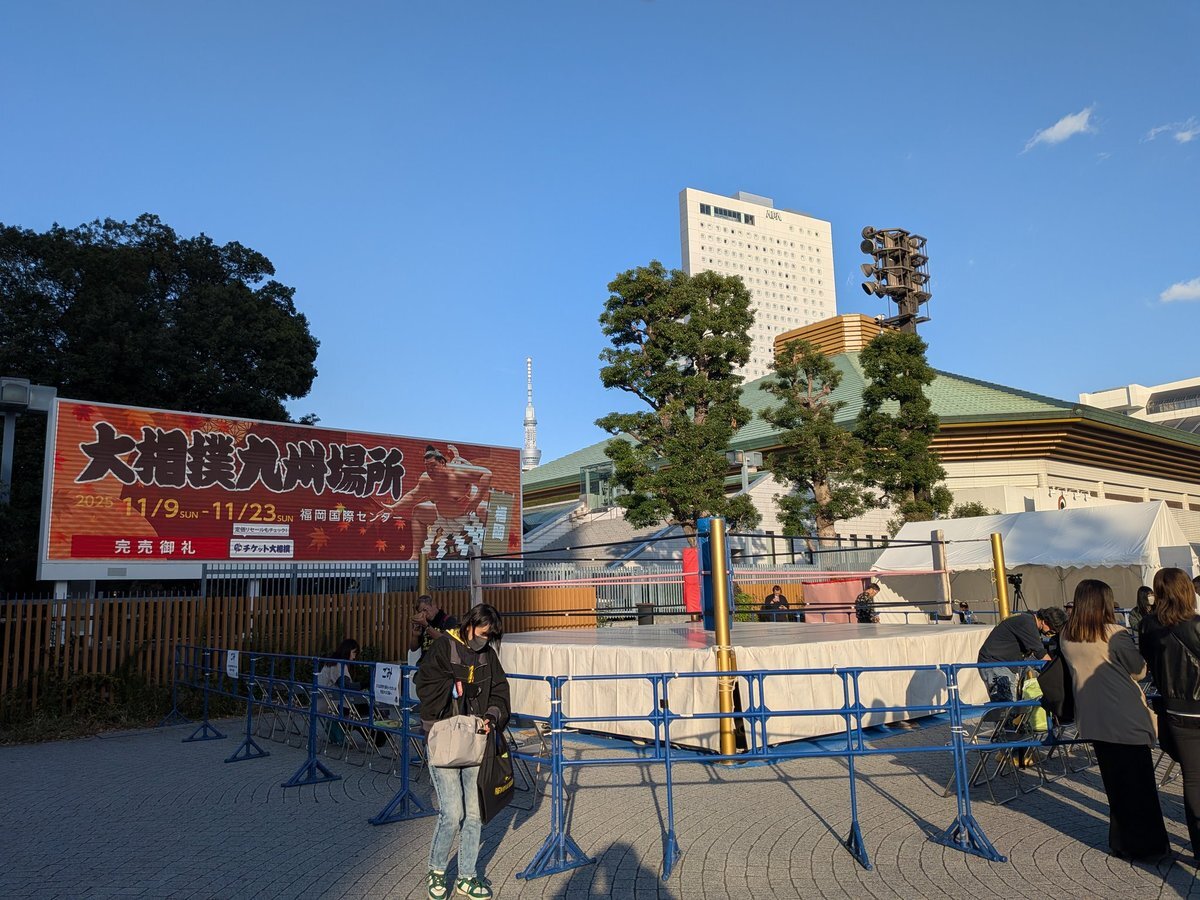 #両国国技館 奥にはスカイツリー😆 今は九州場所開催中✨️ まだ一度も生で相撲を 観たことがないので IGアリーナの夏場所とか 行ってみようかな😆 #両国 #Bリーグ観戦 pic.x.com/FLKWhNLLCx
