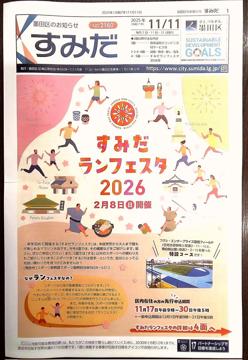 新しいお知らせが届きました。👍 すみだ区報は来年2月8日(日)に開催される『すみだランフェスタ』の案内です(^-^)/ また、勝海舟の足跡を紹介した『海舟とすみだ』も配布中です🎵 #すみだランフェスタ #勝海舟 #海舟とすみだ #江戸のれん #両国観光案内所 pic.x.com/8SO1dbrYbG
