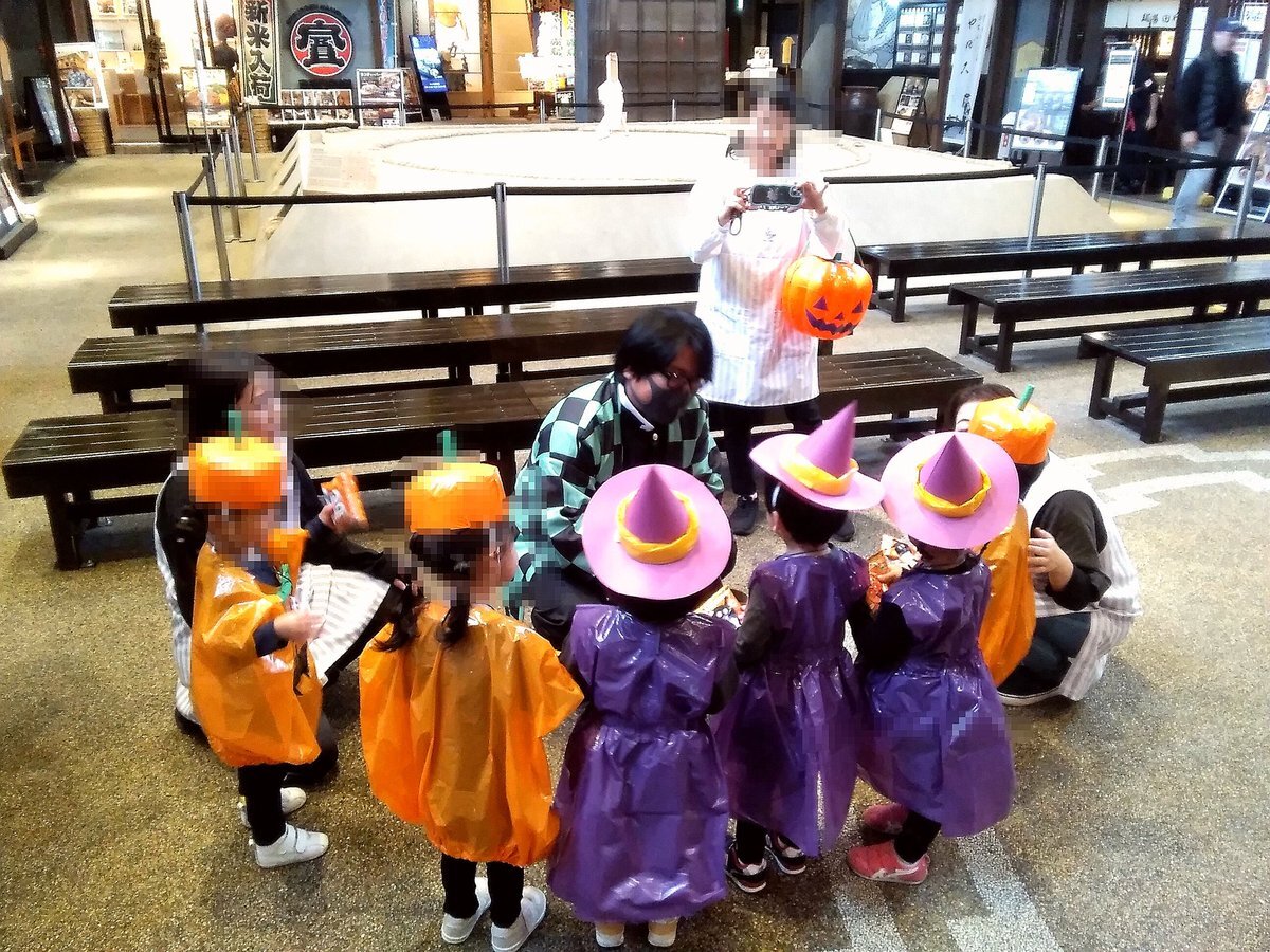 本日10月31日、ハロウィンです🎵 先ほど保育園の園児さん達が江戸のれんに来てくれました(^-^)/ 皆さん仮装して可愛い❤️ 所長からいい物もらえたかな~⁉️ ハロウィンパッケージの🎃どら焼きもございます😉 #ハロウィン #仮装 #両国江戸のれん #両国観光案内所 pic.x.com/f4ta7qvkPT
