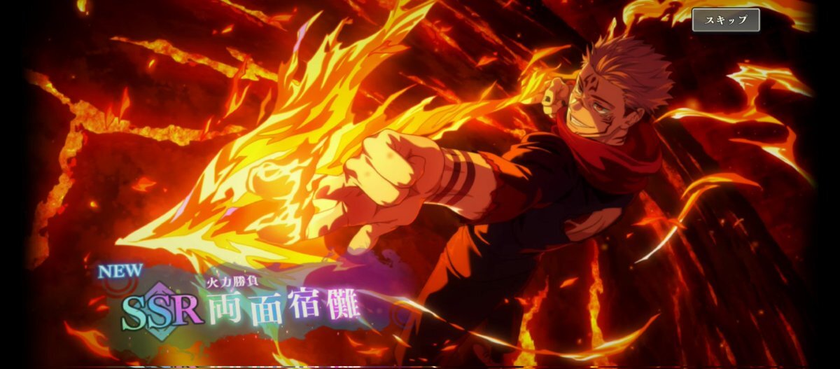 え?ちょっとちょっと、 まさかの1発で引き当てました、、 普通のがSSRに変わって あの演出でした…!! #ファンパレ #両面宿儺 x.com/jujutsuphanpar…