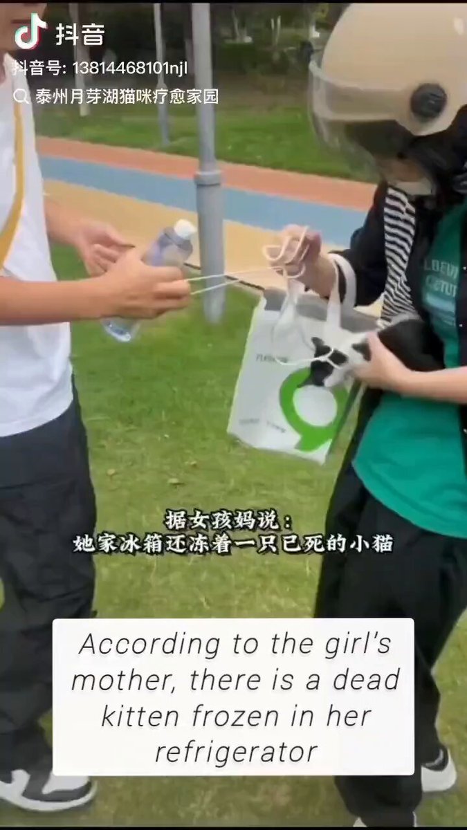 Binhu Square, Dongsheng District, Ordos City, Inner Mongolia, China The girl says she likes cats but treats them badly: Drags a kitten behind her, freezes the kitten. Thanks to the intervening boys. #worrying #veryworrying #animalabuse #animalabuser