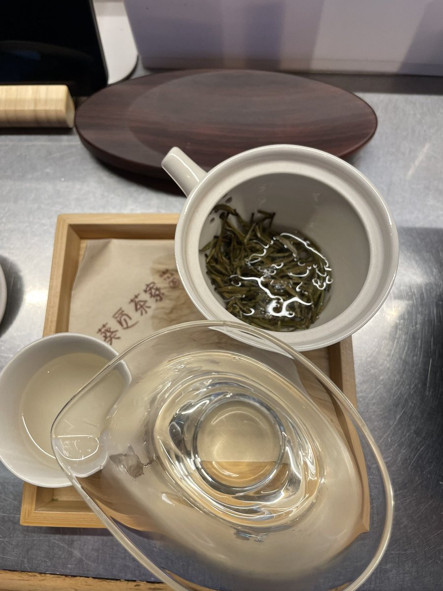 即実践 茉莉銀針を90℃のお湯で 蓋碗にはお湯を残して頂きます まろやかで渋みなし 感動 あるきちさんの指導通りに入れれば美味しいお茶が飲める事を改めて実感 #葵觅茶寮 #クイミチャリョ #茶好連 #狛江市 #中国茶館 #黄茶 #中国紅茶 #烏龍茶 #中国茶 #杭州 pic.x.com/KCbZeKsBVC