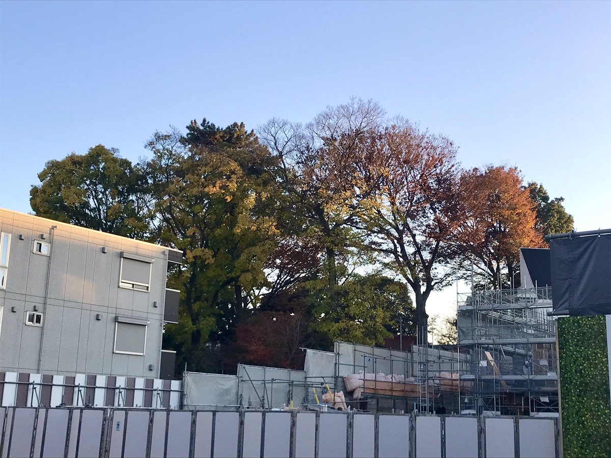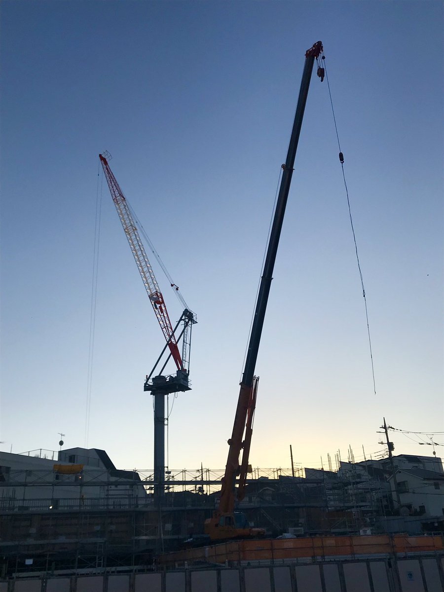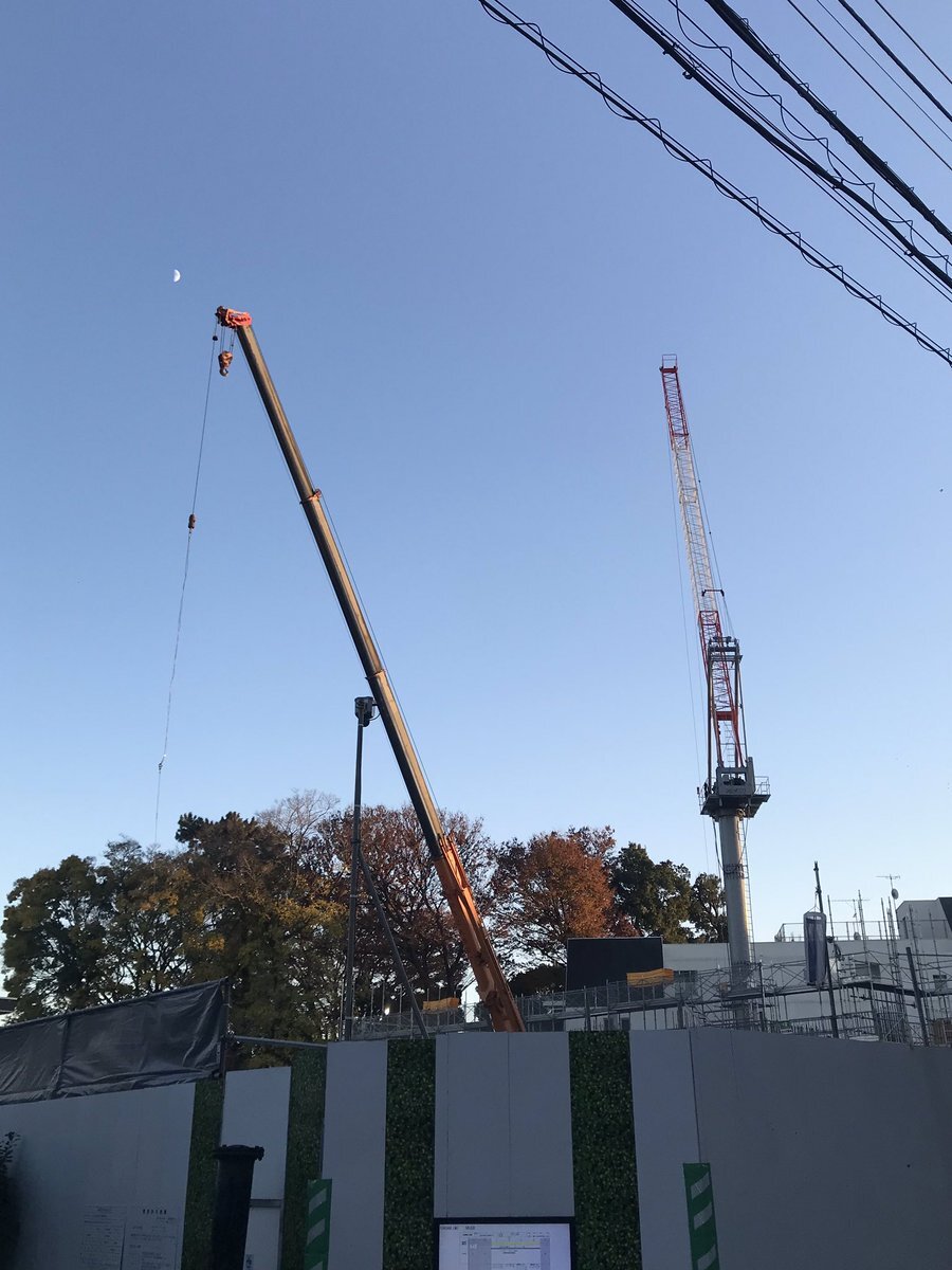#弦巻神社 の隣のマンション建設現場 黙々と働くクレーン ②③の背景の樹々は小高い弦巻神社の森 上弦の月が小さく浮かぶ 先に進むと、④ #中央図書館 の裏の遊歩道 pic.x.com/RNjwA2TAbG