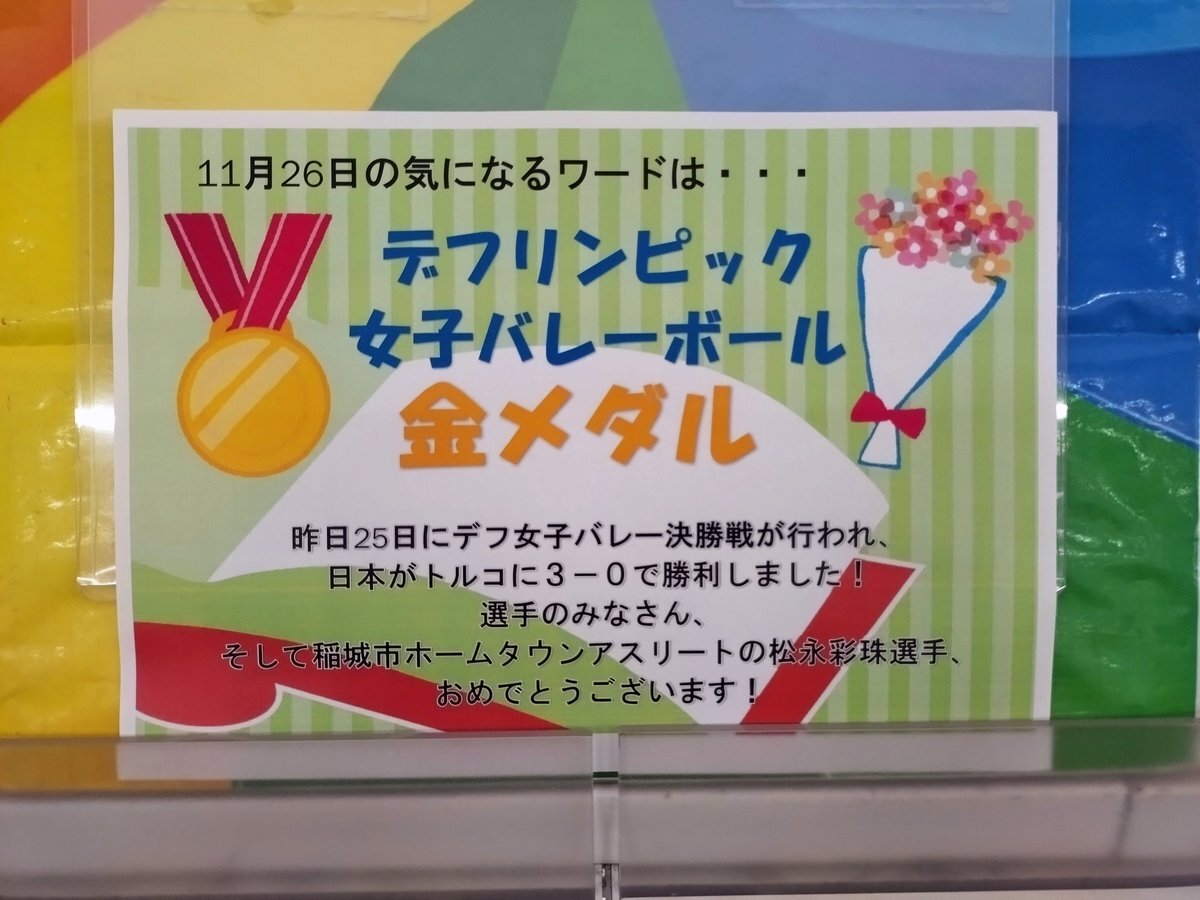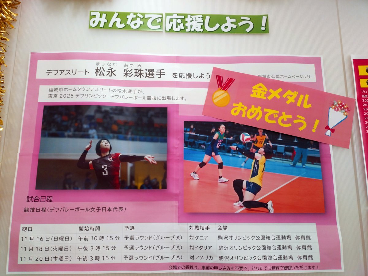 【毎日展示】#中央図書館 昨日11月25日に #デフリンピック 女子バレーボールの決勝戦が行われ、稲城市ホームタウンアスリートの松永彩珠選手を応援し、パブリックビューイングを開催しました。 日本チームはトルコ相手に3-0で勝利✨ 金メダルおめでとうございます!! pic.x.com/Uas4aeqvSM