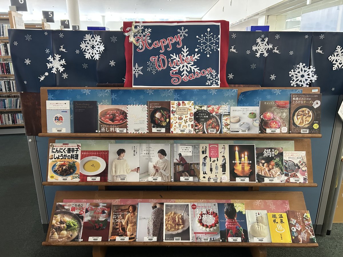 【展示情報】 #中央図書館 🎄~Happy Winter Season~🎄 木棚にて展示中です。 温まるレシピ パーティーの準備 暖かい冬小物… 色々な冬支度ご用意しました。 今年も、大切な人と、家族と、一人で贅沢に、 皆さま素敵な冬をお過ごし下さい⛄ pic.x.com/mRrgPp4Urh