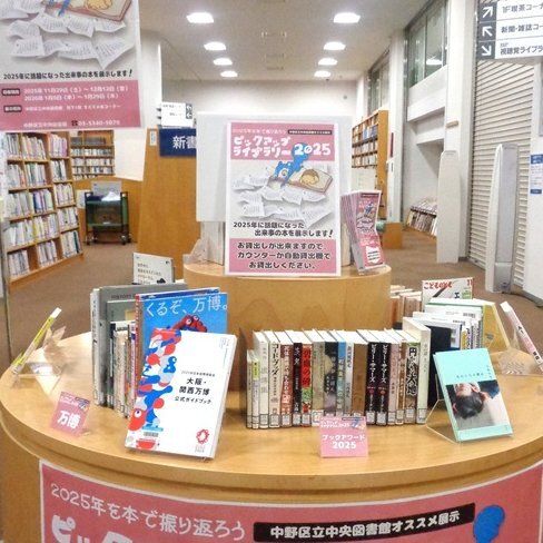 【イベント】#中央図書館 オススメ展示『ピックアップライブラリー2025 2025年を本で振り返ろう』 2025年11月29日(土曜日)から12月12日(金曜日) 2025年に話題になった出来事をテーマに関連本を展示します。 詳しくは下記のホームページをご覧ください。 library.city.tokyo-nakano.lg.jp/event/?id=367 #中野区立図書館
