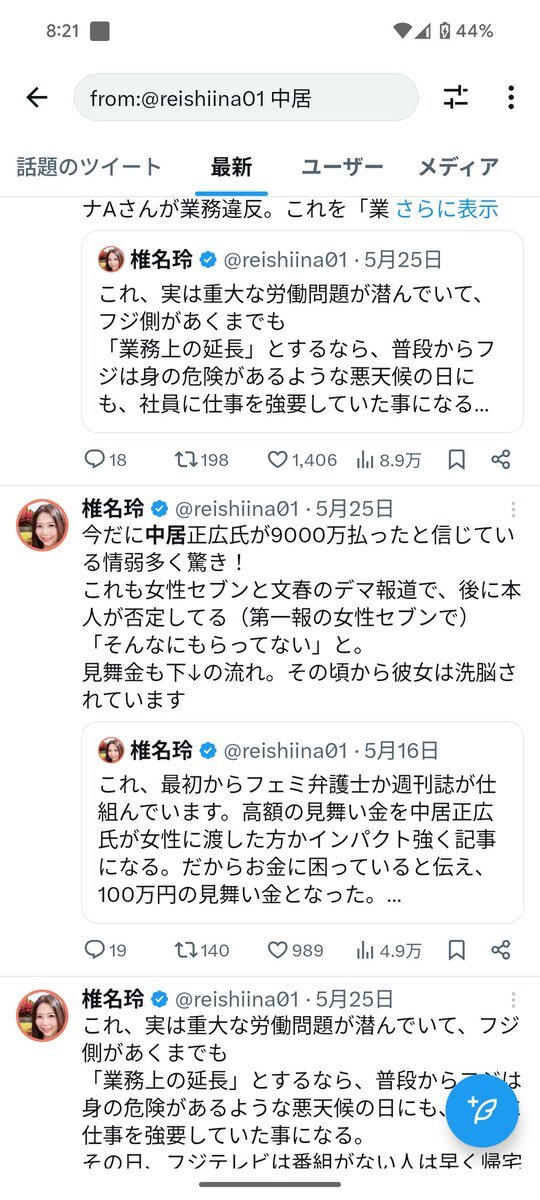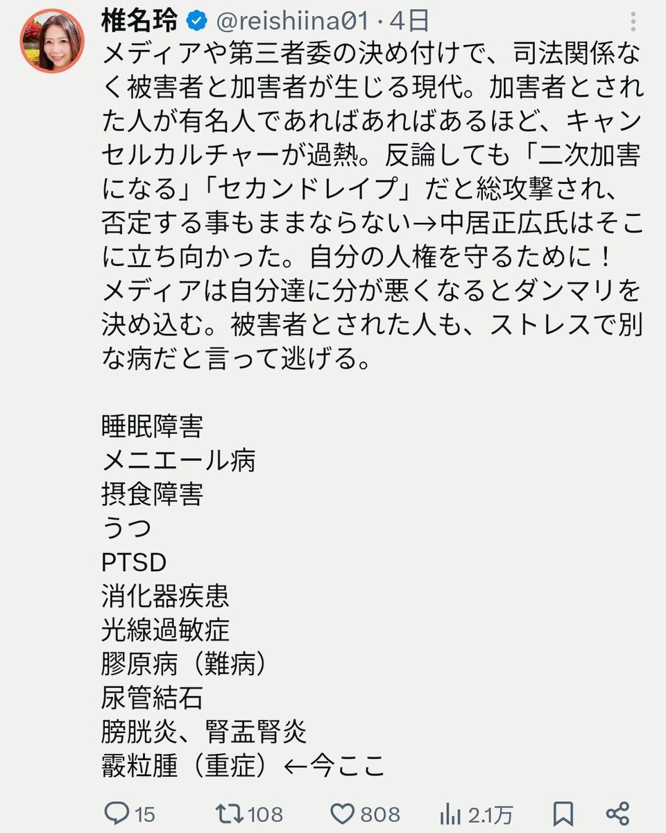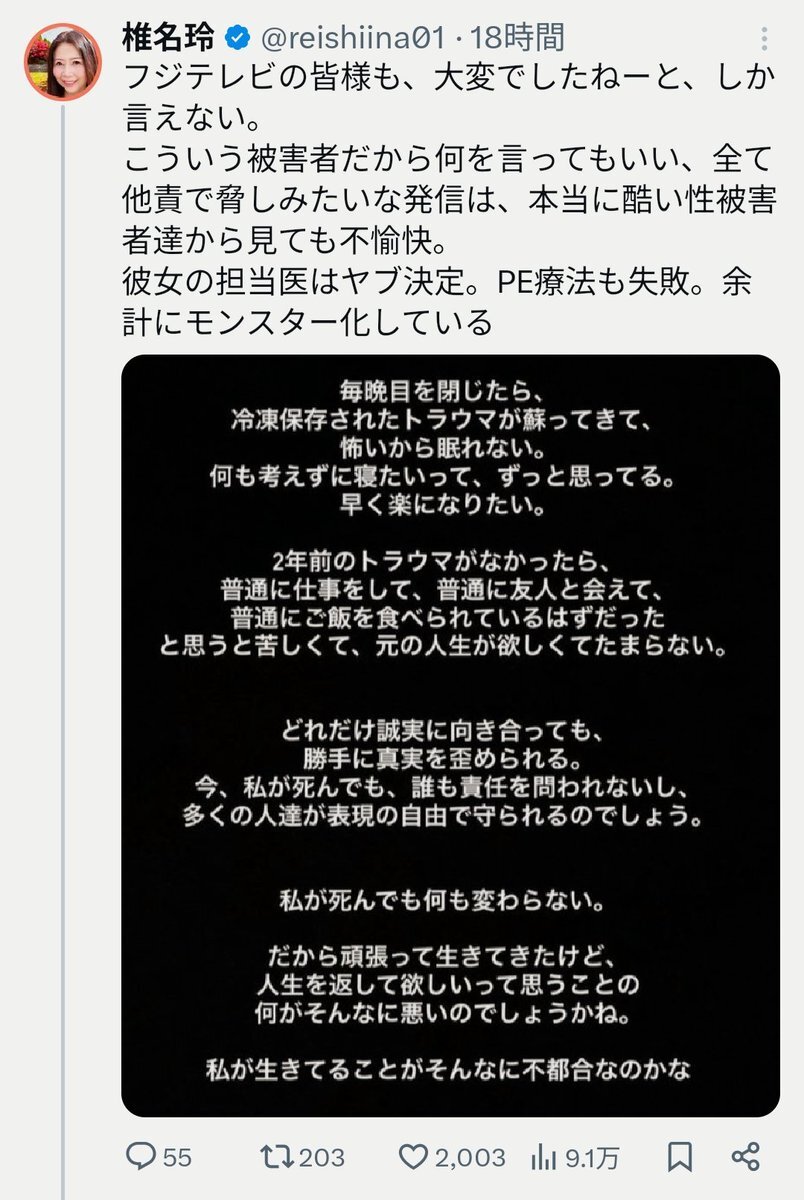 椎名玲(ペンネーム)@reishiina01 の誹謗中傷、今回もあまりにも多いのでツリーになっています。 #中居 #渡邊渚 pic.x.com/eEmBMTBERL x.com/bengo4topics/s…