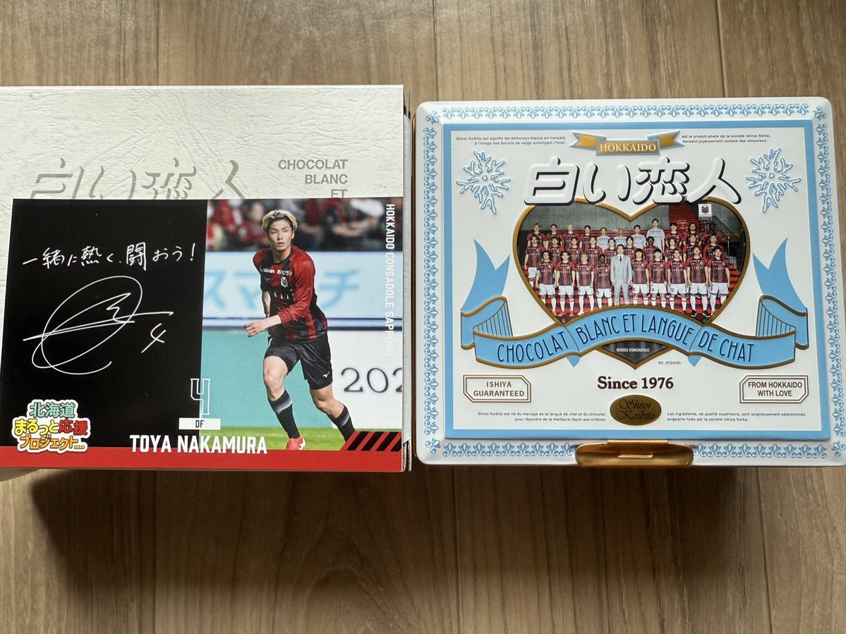 北海道まるっと応援プロジェクト2025 頼んでいた物が届いた〜🍫💕 白い恋人缶の写真シーズン初めのものだ…😹 #consadole #白い恋人 #中村桐耶 #北海道まるっと応援プロジェクト2025 pic.x.com/Nemd2rJOvV