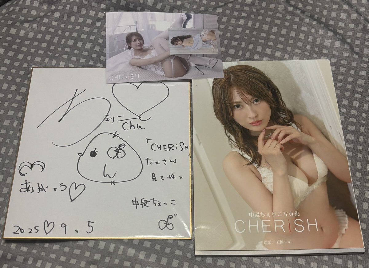 昨日届きました🙌ビンゴのおかげでサイン✍️色紙も🥰 …忘れられてるんじゃと思ったけど(笑) オンラインサイン会✍️ご本人の負担は大きいかもだけど地方の自分にはありがたい企画でした 大胆下着も素敵😍お気に入りは独特なメイクのイブニングドレス #中段ちぇりこ写真集 pic.x.com/zrYlaI2NTO