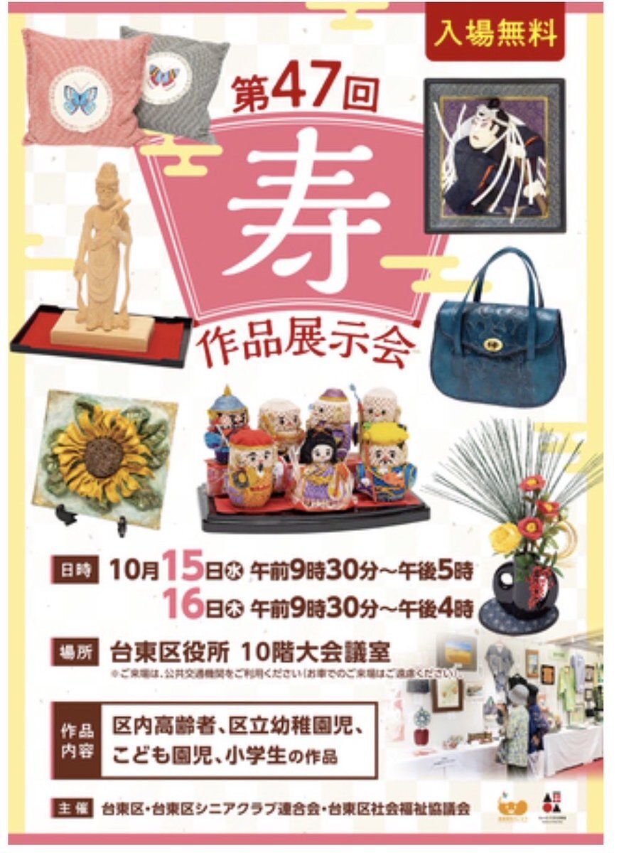 中沢ふみおです 第47回寿作品展示会が区役所10階にて本日(10月16日午後4時まで)開催されております 素晴らしい作品の数々が展示されております 展示の他にも輪投げ等のスポーツコーナーや手作り体験コーナー等が楽しめます #中沢ふみお #台東区役所 #寿作品展示会 #シニアクラブ連合会 pic.x.com/nwLfYC01ug