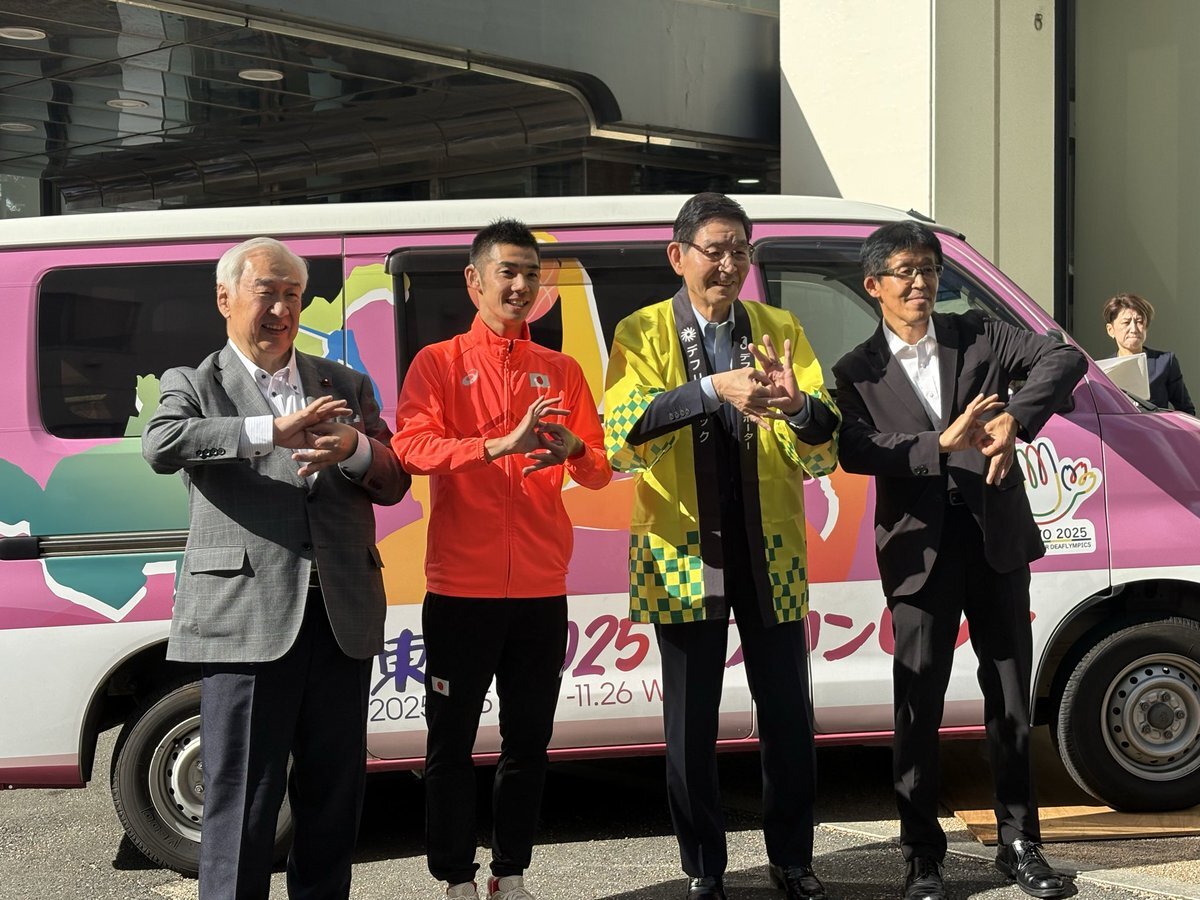 中沢ふみおです デフリンピックPRカーが台東区役所に 青山選手と共にセレモニーが行われました #中沢ふみお #台東区 #東京2025デフリンピック #青山拓朗選手 #キャラバン #デフリンピックPRカー pic.x.com/KfdKrW7PiA