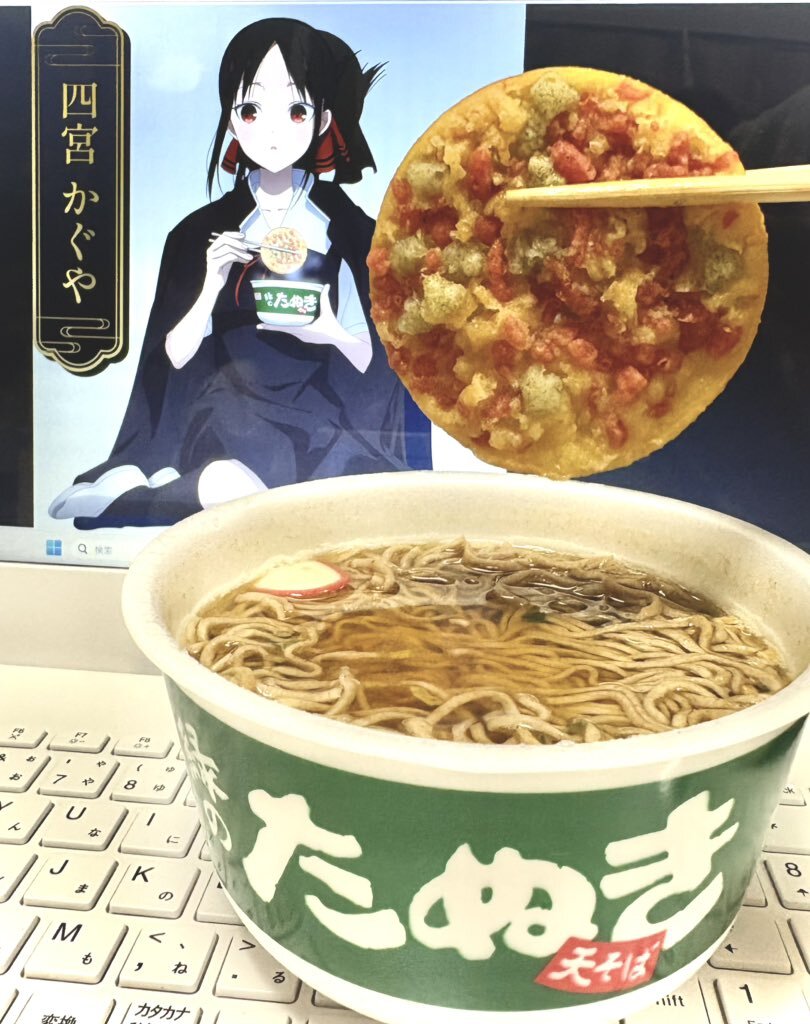 前回の反省を活かしてかぐや様の食べ方で食べました😊🥢 持ち上げてみると月に見えてきた🌕(洗脳済み) #中秋の名月とかぐや様 #かぐや様と月見と緑のたぬき pic.x.com/E8Ovo70ydv x.com/kaguya_solari/…