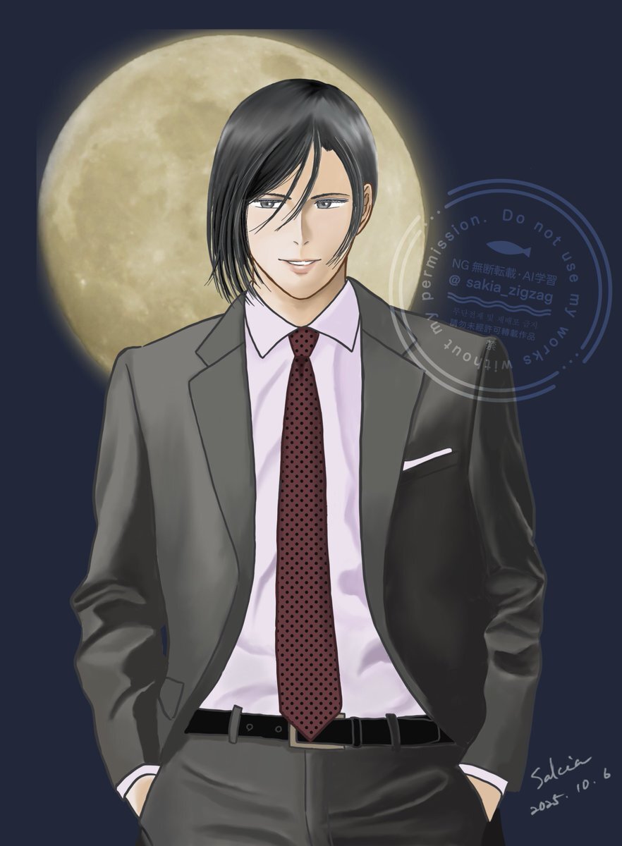 #中秋の名月に李月龍さんを愛でよう2025 BANANA FISH 李月龍 / Lee Yut Lung Moon in the empty sky • • • • • 気位が高いけれど、抱えている寂しさゆえに憎めない人だなあと思う。 月は夜空で孤高に輝く pic.x.com/0mHqwOnM32
