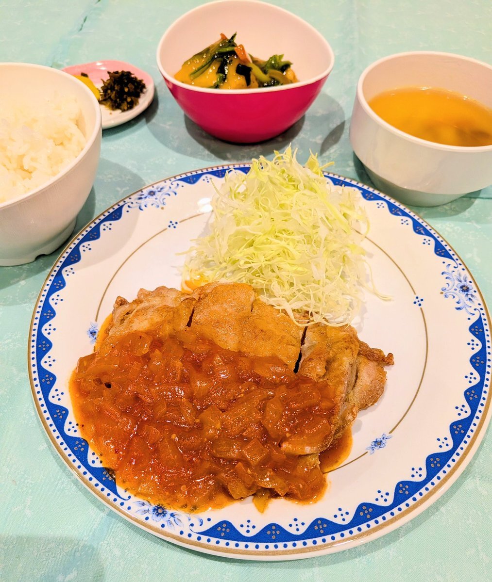 今日の晩御飯 トリチリ 納豆 べったら漬 キャベツの味噌汁 米 #晩御飯 #ごはん #中華風 #献立 pic.x.com/j1scrc2PO6