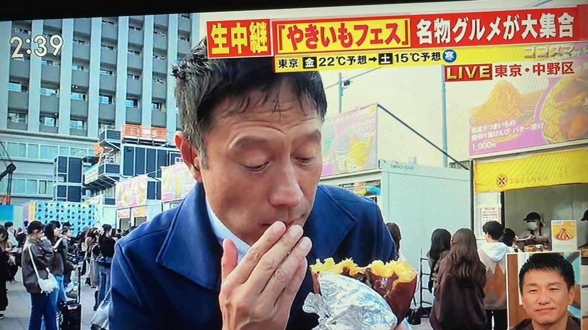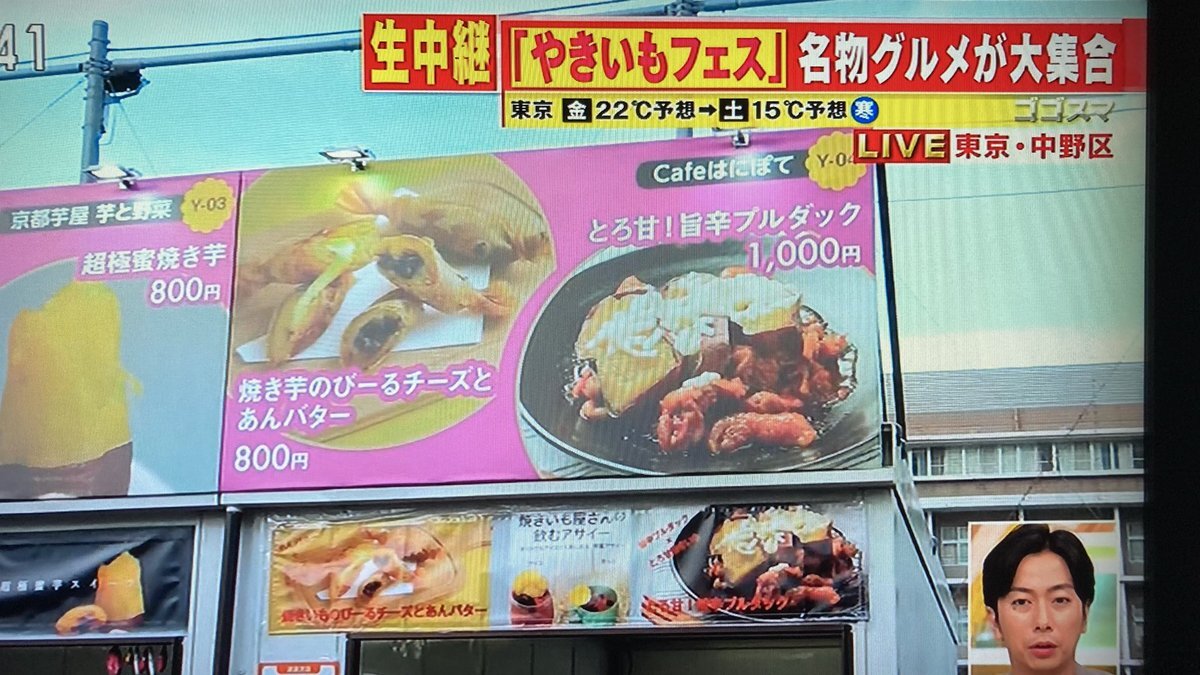ゴゴスマ生中継【やきいもフェス】 フェス期間中に来客80万人⁉️は、ちょっと盛り過ぎかなぁ〜もっと寒くないと《やきいも》をめちゃくちゃ食べたいとは・・ #やきいもフェス #中野deやろう #中野飲食店 #中野四季の森公園 pic.x.com/DQxhe2hDRy