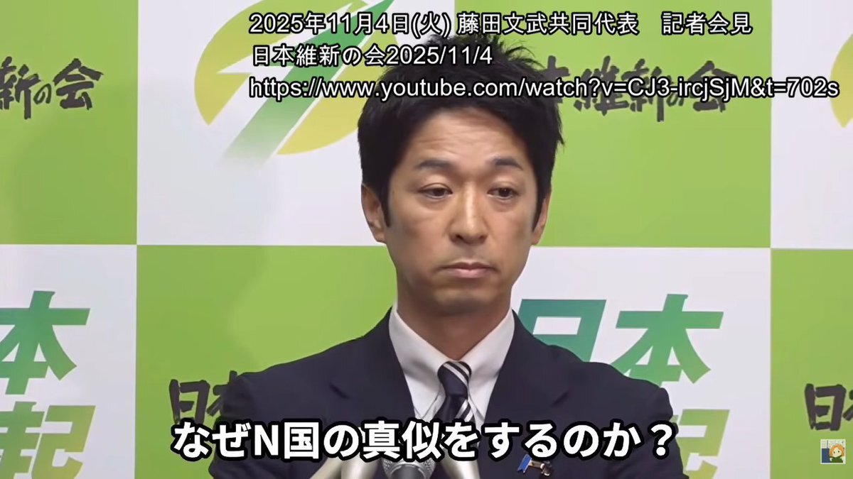 本日の本会議での代表質問後の記者会見です。赤旗の主張についての説明と質疑応答もさせていただきました。 ↓ 2025年11月4日(火) 藤田文武共同代表 記者会見 youtube.com/live/CJ3-ircjS…