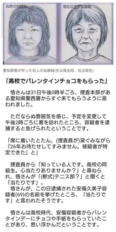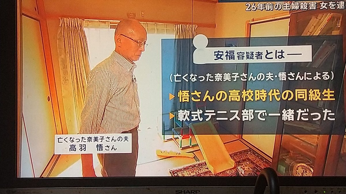 26年前の主婦殺人事件の犯人が逮捕された。犯人は殺された主婦の夫の高校時代の同級生、軟式テニス部で一緒だった女性。奥さんが殺される前高校の同窓会で犯人と会っていたと。高校卒業してから20年以上経っていたのに何で 奥さんをころしたのか動機は 不明 #主婦殺人事件 pic.x.com/9W2kKmONqQ