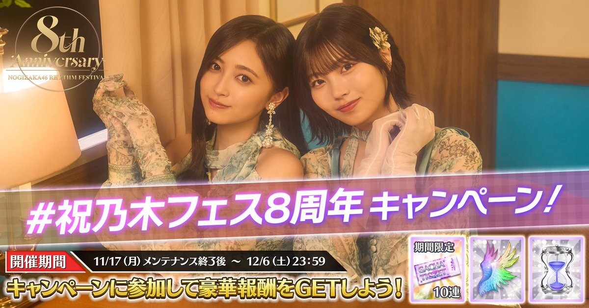 🎉#祝乃木フェス8周年 キャンペーン🎉 11/17(月)より、乃木フェス8周年を記念したキャンペーンを開催✨ ⏬キャンペーンに参加して豪華報酬をGETしよう⏬ 【キャンペーン特設サイト】 rakusta.net/ja/campaign/a4… ⏱️キャンペーン開催期間⏱️ 11/17(月) ~ 12/6(土)23:59 まで 🎁報酬アイテム🎁