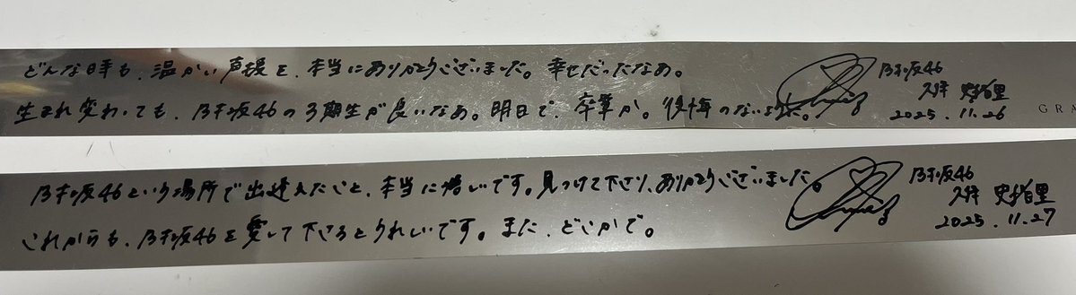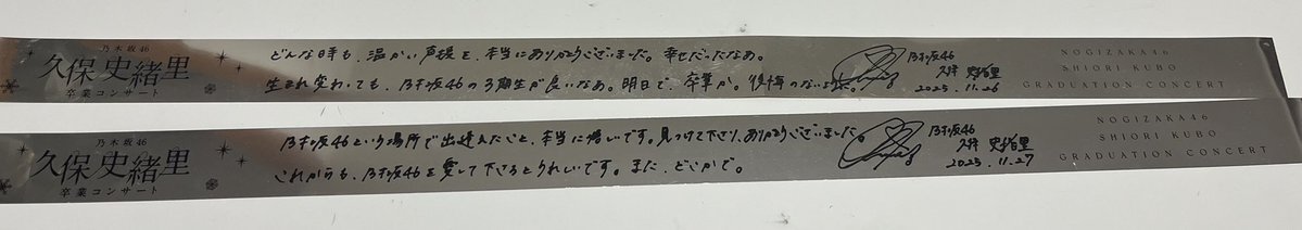載せるか迷ったけど、1人でも多くの史緒里ちゃん推しに届きますように🙏 どちらも頂き物で史緒里ちゃんのおかげで出会えたご縁、ほんとに優しい方々のおかげです! 本当にありがとうございます🙇🏻‍♀️ #久保史緒里卒業コンサート #久保久保久保久保久保史緒里 #乃木坂の史緒里 #久保史緒里ロス pic.x.com/KvNgX4cSse