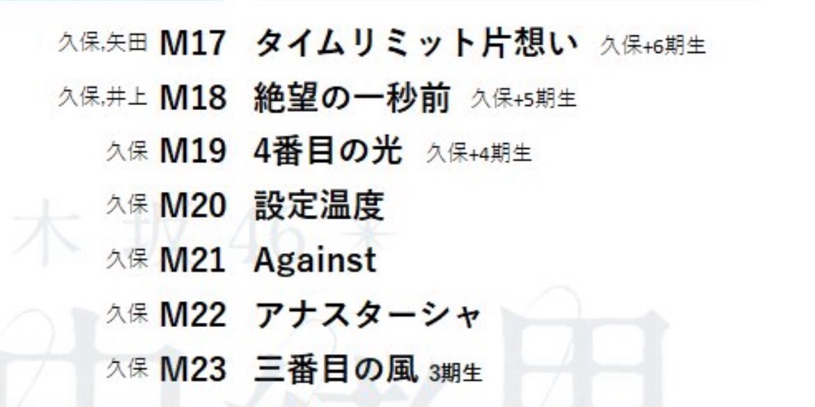 タイムリミット「おー」 ↓ 絶望の1秒前「あー」 ↓ 4番目の光「光太刀魚」 ↓ 設定温度「えー」 ↓ Against 「えー?!」 ↓ アナスタージャ「ファツッッッ」 ↓ 3番目の風「フォォォォォォォ」 見事昇天しました。 #久保史緒里卒業コンサートDay2