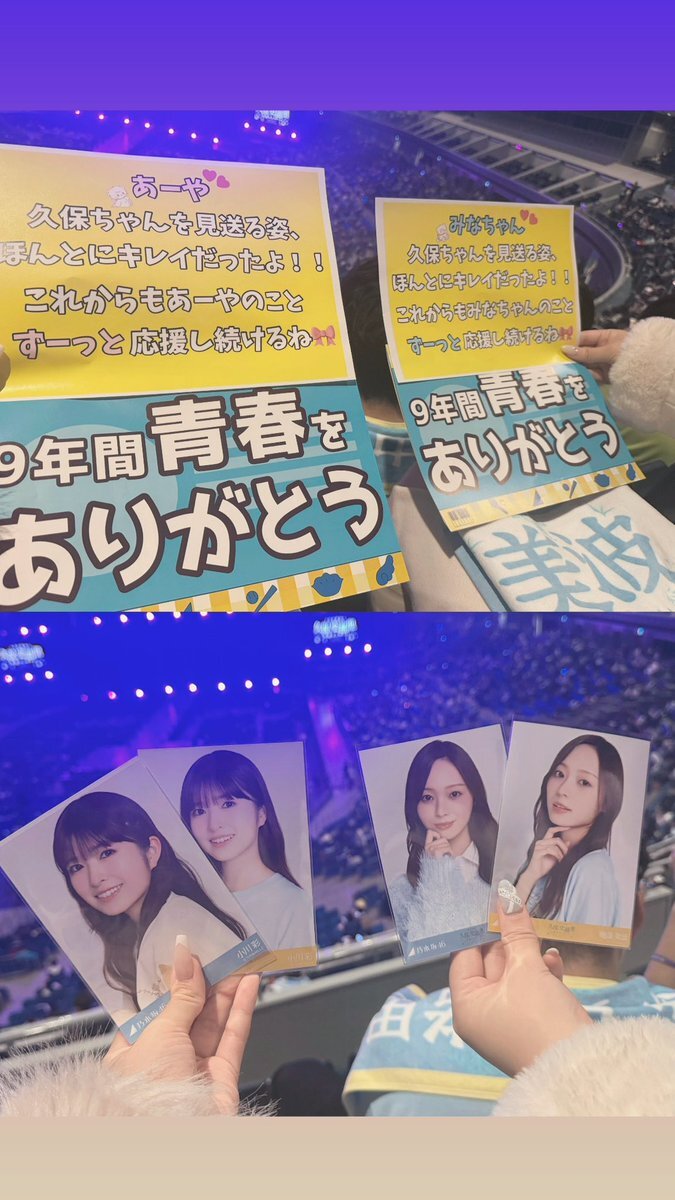 9年間お疲れ様でした! 卒業発表されて昨日まであっという間で実感わかなかったけどコンサート中終始涙凄くて笑顔で見送れなかったのが若干心残り でもほんと良かった! セトリも完璧だった!! ほんと乃木坂にいてくれてありがとうございました!! #久保史緒里卒業コンサートDay2 pic.x.com/a2Kn2LeszS