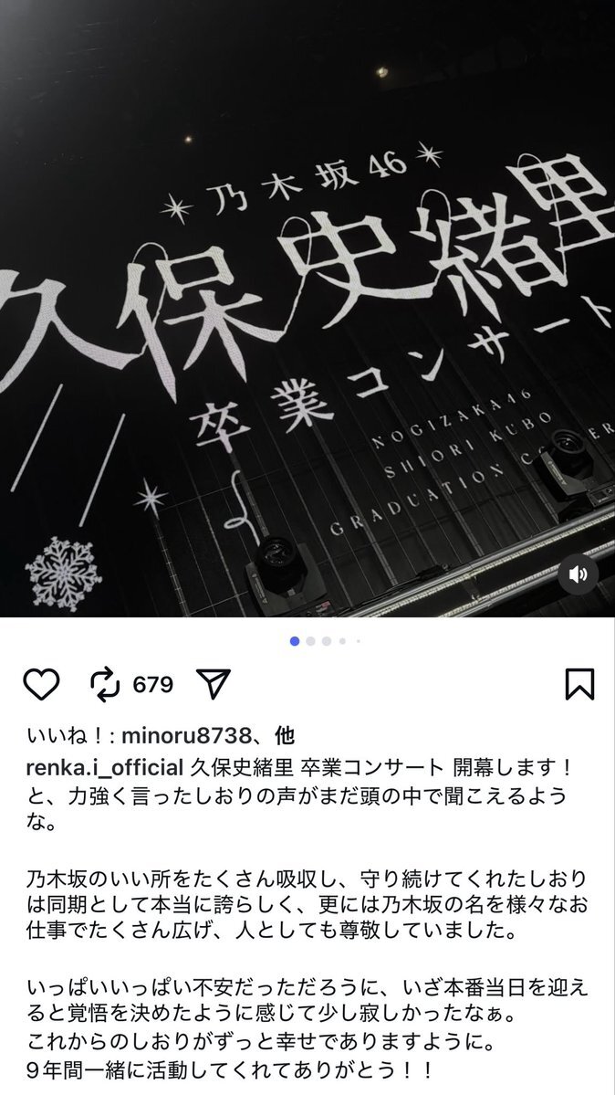 ここ2、3日の事なんだけど、メンバーがインスタやブログを更新してしーちゃんとの写真や、しーちゃんへの感謝の言葉を見ると、卒業したのを嫌でも実感させられて泣いてる。 #久保史緒里 x.com/2003_417/statu…