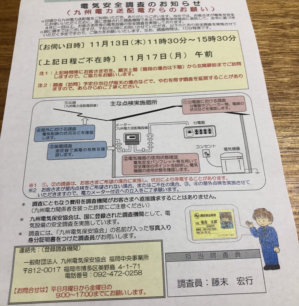 九州電気保安協会さんはおバカさん揃いのようですねぇ! 電気調査が平日昼間!不在時の予備日平日午前中って…働いていますから平日のその時間帯に家に居る訳ないでしょう! たかが電気屋ごときが調子に乗ったらいけませんよ!人様の所へ来るなら土日に手土産持ってきなさい! #九州電気保安協会 pic.x.com/8JfhRy6DhI
