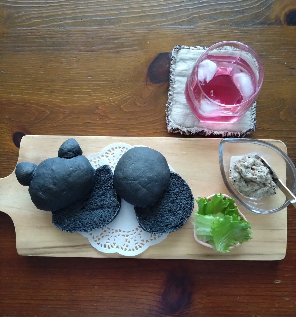 ねこまるバーガー 野州麻炭混ぜて黒パン🐈⬛● シーチキン+だし醤油+マヨネーズ+塩+すり黒ごま 自家製ブルーベリーシロップをウィルキンソン炭酸水で割って♫ 「高まるために捨てる」ニーチェ 黄色くなった葉が 樹木から離れ去るかのように… 思考・脂肪デトックス! #乳製品不使用 #てごねパン pic.x.com/5oZbN7yGuE