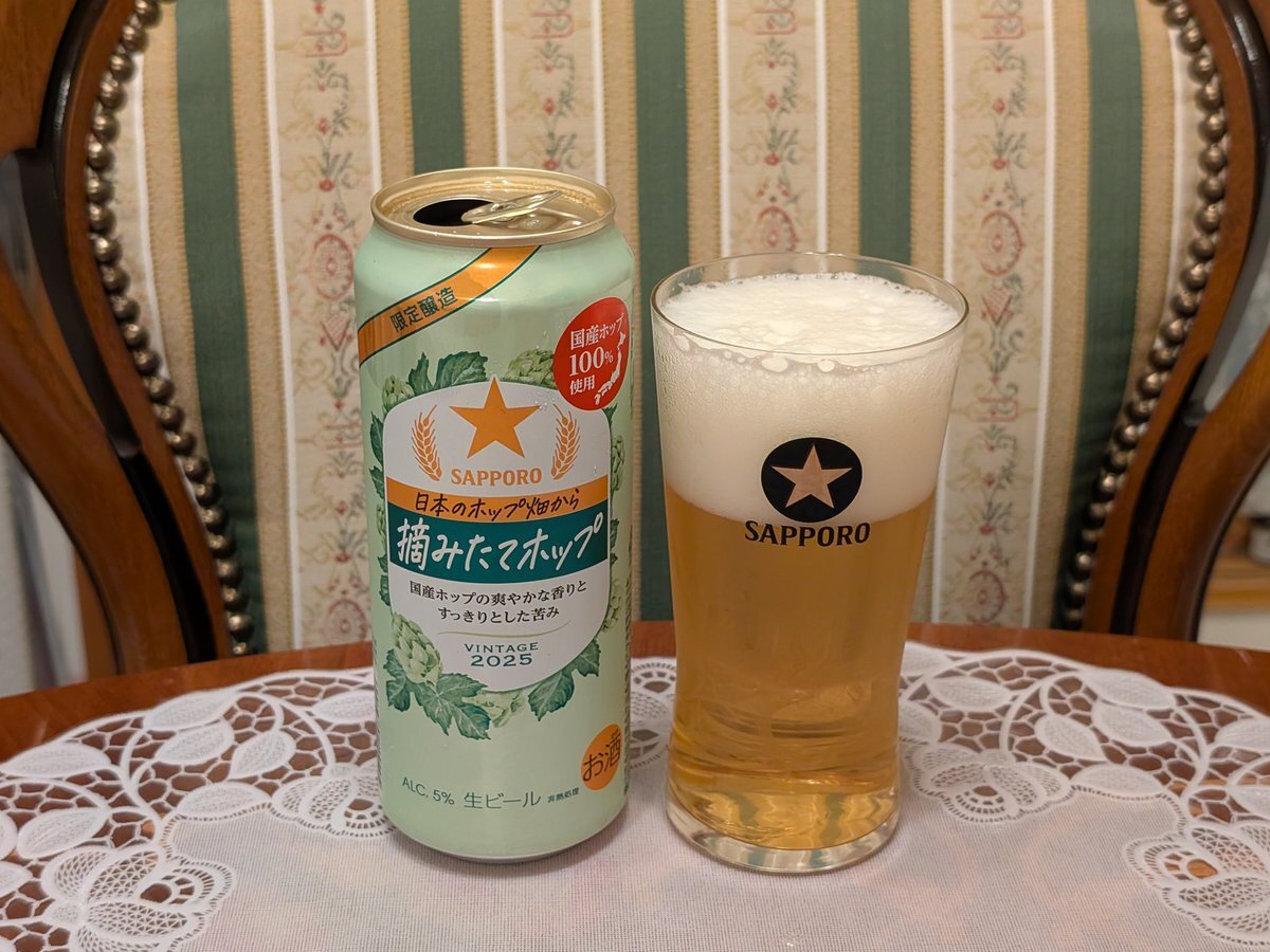 日本のホップ畑から 摘みたてホップ どこからどこまでがビール名なのか!?笑 ホップの種類は出てませんが国内ホップなので 東北地方で拡張したホップ畑から実り始めたホップなのかな フレッシュな感じの柔らかめなビールですね #サッポロビール #摘みたてホップ #推しはサッポロ #乾杯をもっとおいしく pic.x.com/xMKunZGN6e