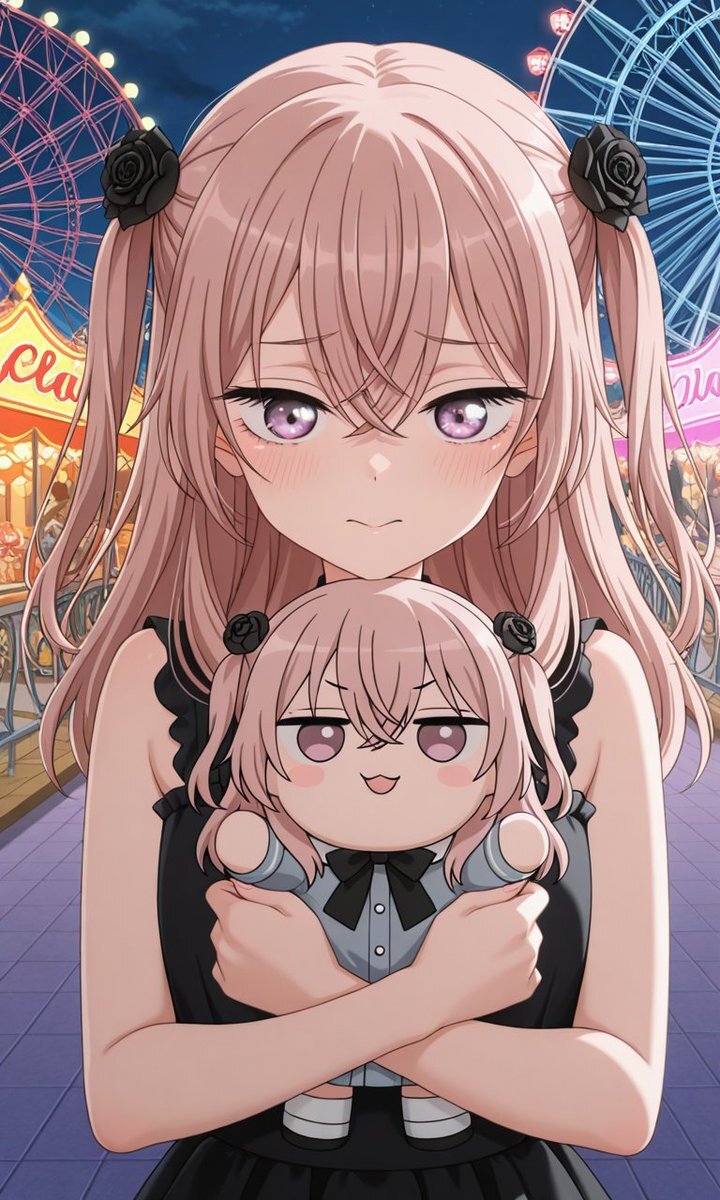 夜の遊園地で照れながら大きなぬいぐるみを抱える紗寿叶🌙 今日も一日お疲れさま! Image generated using "Sajuna Inui" style #かわいいイラスト #乾紗寿叶 #その着せ替え人形は恋をする #絵師さんと繋がりたい pic.x.com/jBGfiiyISq