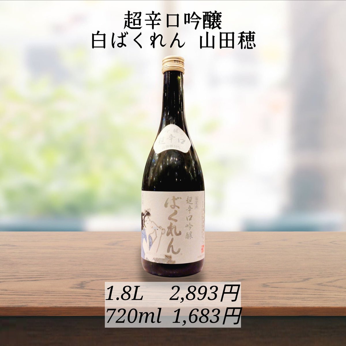 🌾日本酒 新着🌾 #亀の井酒造 #ばくれん 山形県鶴岡市 亀の井酒造様より 「超辛口吟醸 白ばくれん 山田穂」 が入荷しました お待たせしました、白ギャルです。“山田穂“使用の超辛口、アルコール度数は17度 すいすい飲んでるつもりが気付けば彼女に飲まれてるかも 720mlもあるけどお求めはお早めに pic.x.com/RBFE0G2ZhA