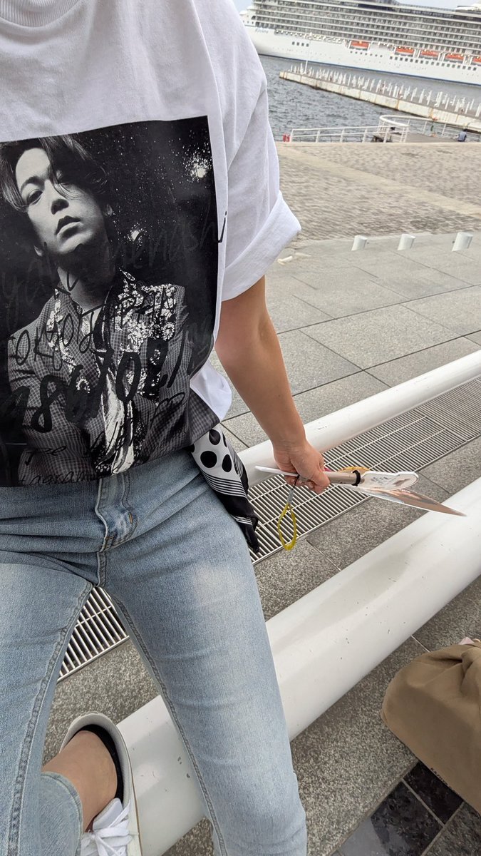 TALK to ME横浜1日目は 亀梨くんのお顔TシャツBlack verで参戦🔥 これ着て新幹線🚄乗った私、強者じゃない🤣? フルオープンだったから歩く宣伝塔だったはず🫶 #亀梨和也 #亀梨和也_TALKtoME pic.x.com/8XNIC3ux75