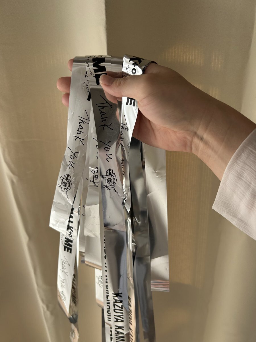 大阪1日目で取れた大量の銀テを横浜のお譲りボックスに入れに行こうとしたんやけど、見つけれなくて外出ちゃって反対側やった事に気づいて係の人に「これ、お譲りボックスに入れたいです」って言ったら戻れないからその辺の人に渡してって言われてなんかちょっとシュンってなった #亀梨和也_TALKtoME pic.x.com/UH2r91Ech2