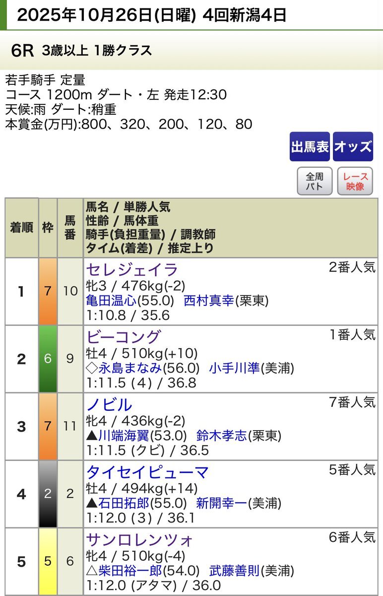 返信先:@BTC95876729㊗おめでとうございます📷写真をどうぞ #オーライカモン の2歳新馬戦 2025年10月26日新潟5R 騎手: #亀田温心 生産者: #三嶋牧場(浦河) #POG #競馬 #keiba pic.x.com/KTpOlo5Jc8
